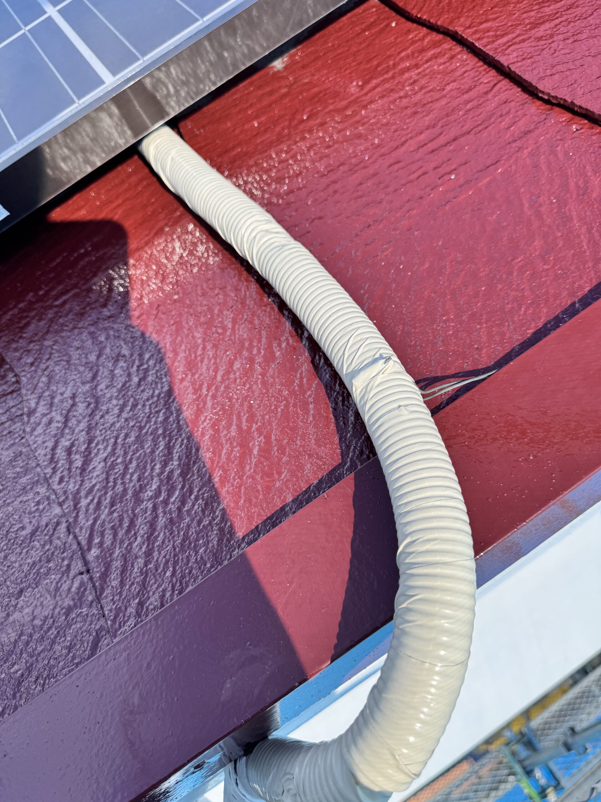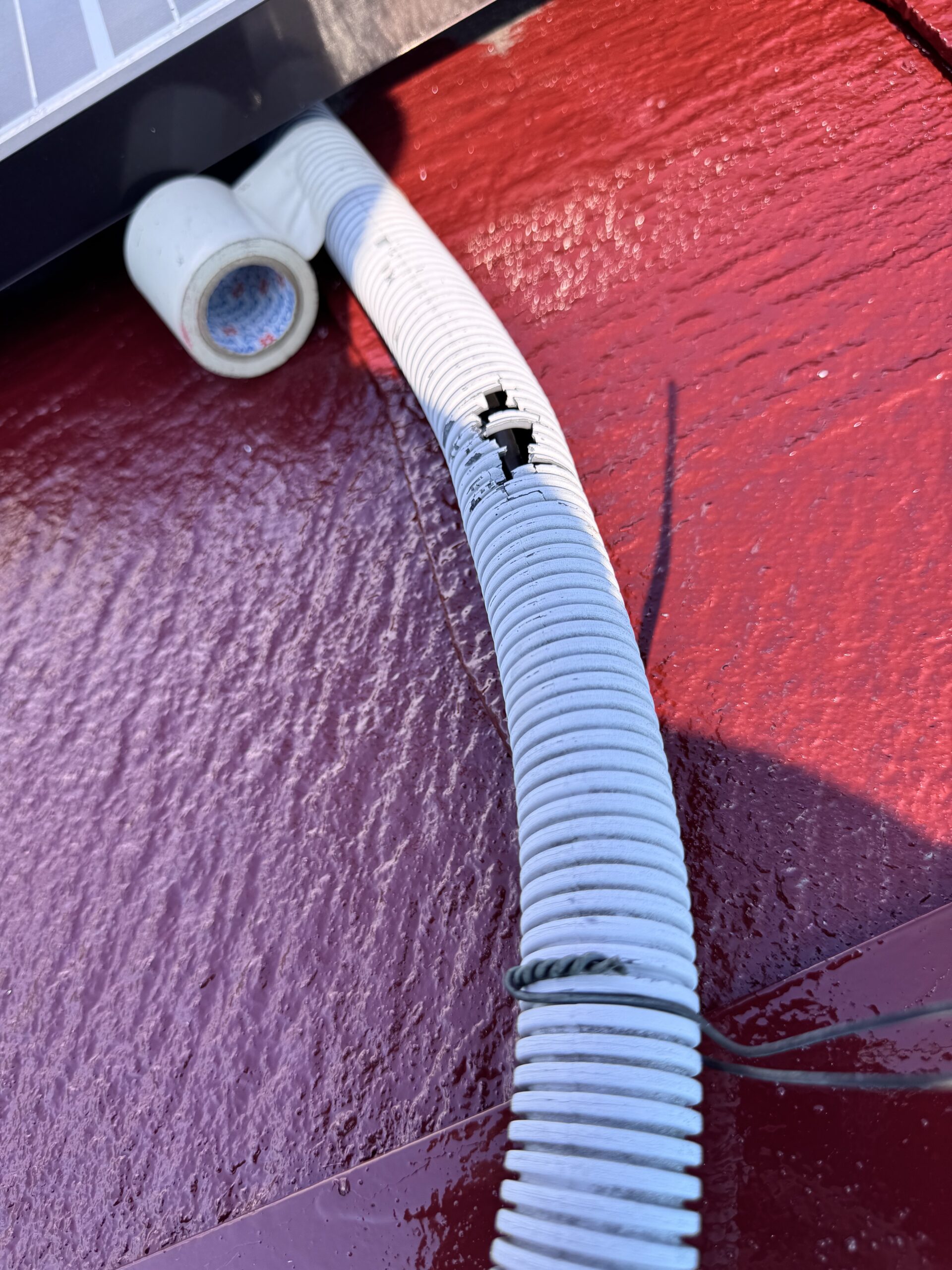 おっっと!!太陽光パネルの配線のカバーがかなり劣化していますね( ノД`)シクシク…このままでは中の配線まで劣化してきますぅ~対処していきましょう!!