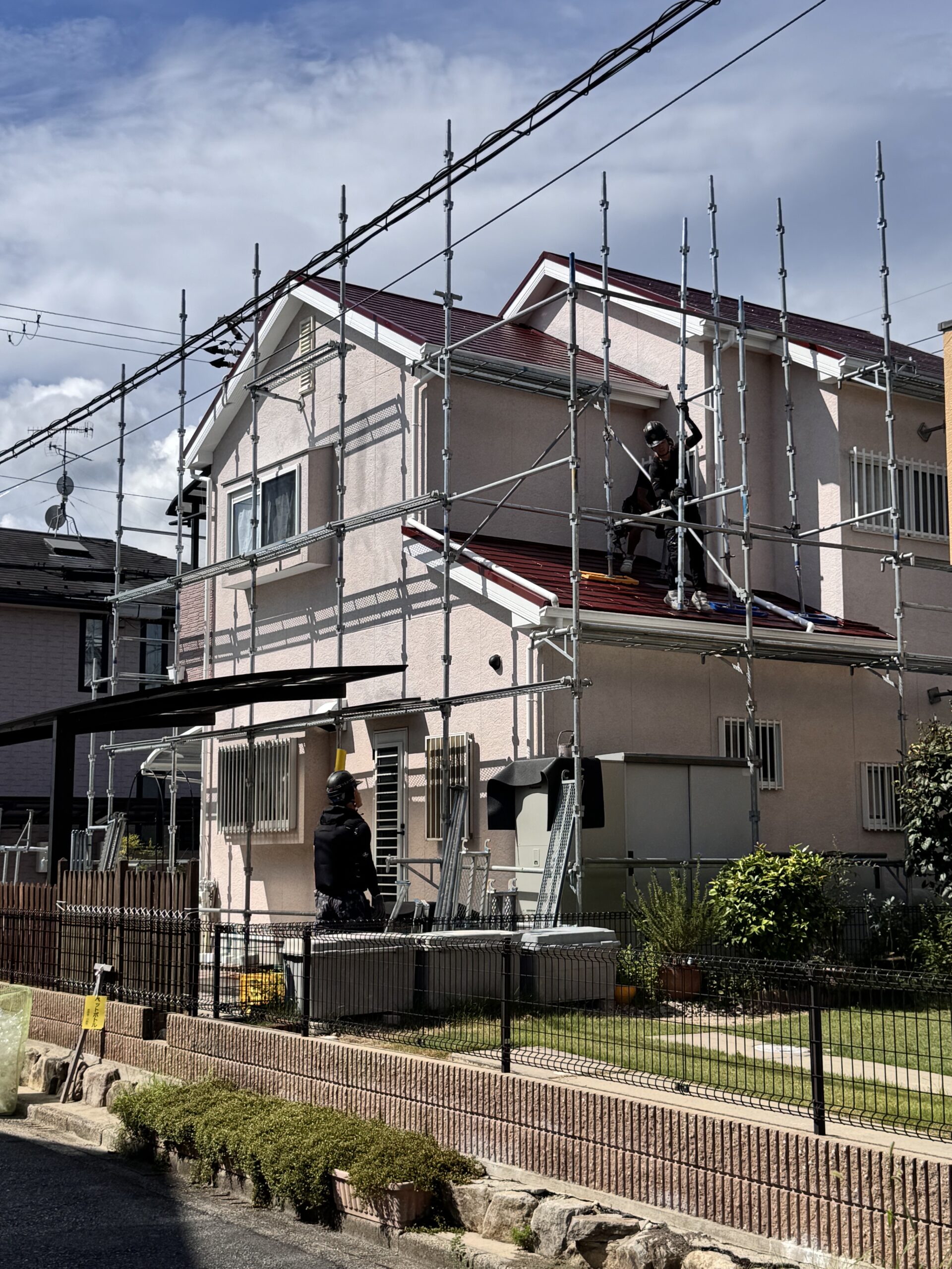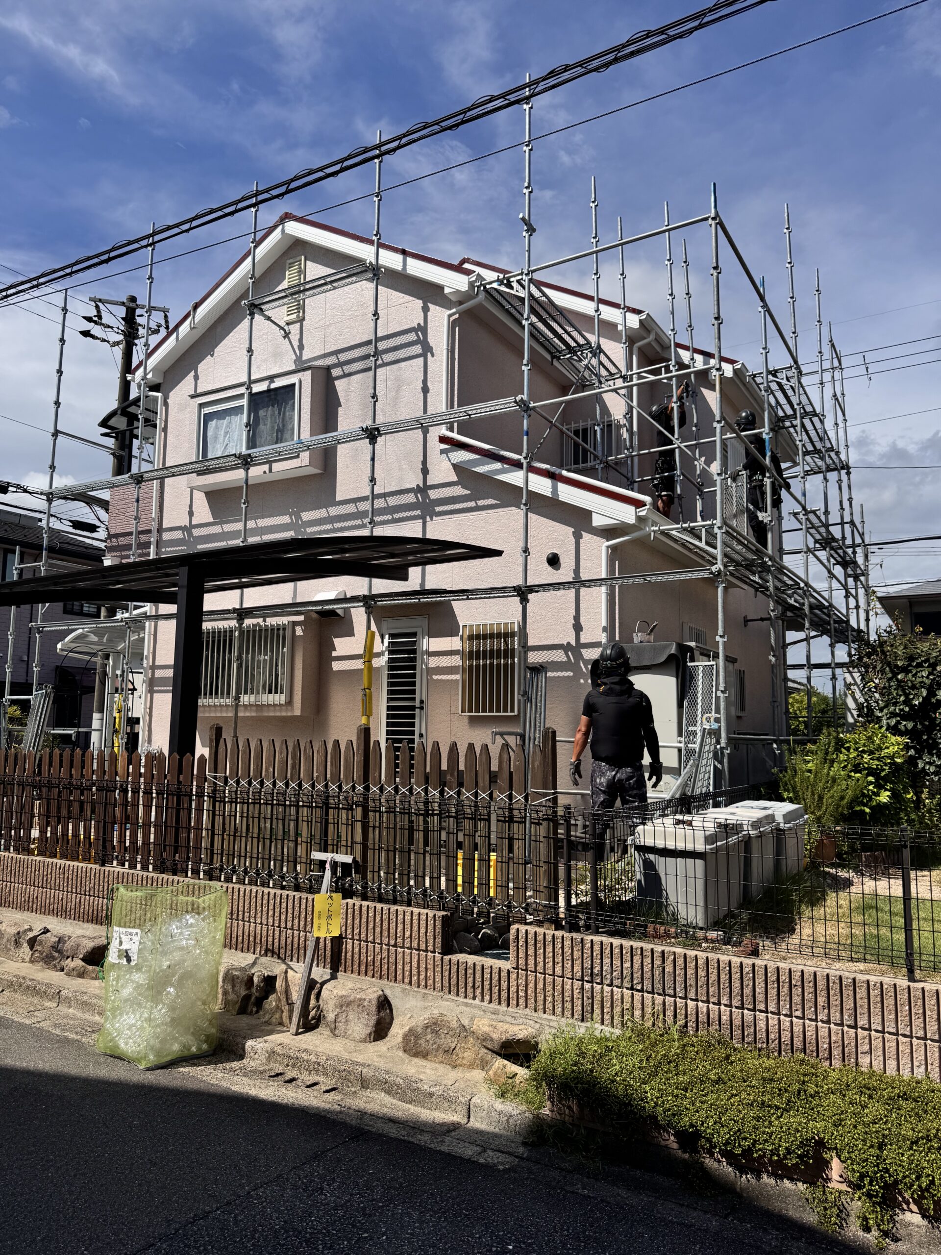 こんにちは。父も叔父も兄も塗装職人という塗装一家に生まれて塗装歴25年。塗装職人一筋の塗人本舗の代表親方・榎本健二でございます。本日は仮設足場解体~完了までです♪