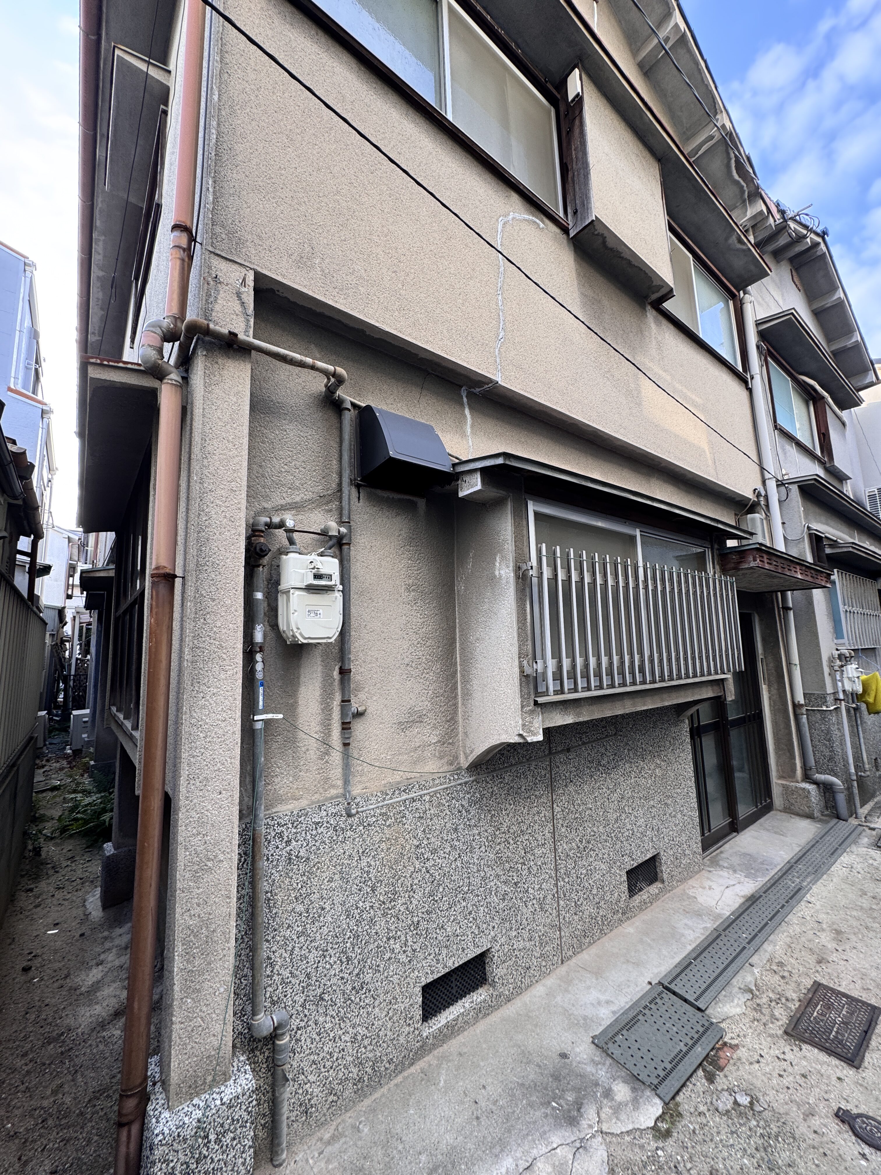 仮設足場設設置前です!!路地が狭くて中々、大変です(^^)/