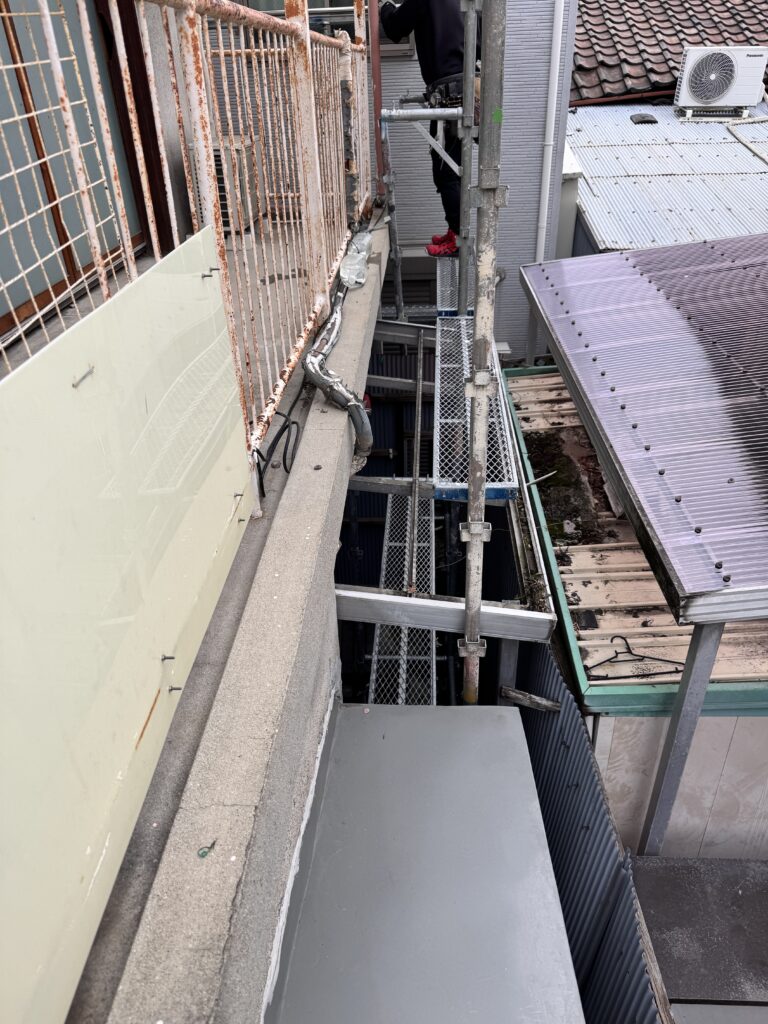 こんにちは。父も叔父も兄も塗装職人という塗装一家に生まれて塗装歴25年。塗装職人一筋・塗人本舗の代表親方・榎本健二でございます。本日は吹田市にて塗装には欠かせない足場の設置をおこないました☺