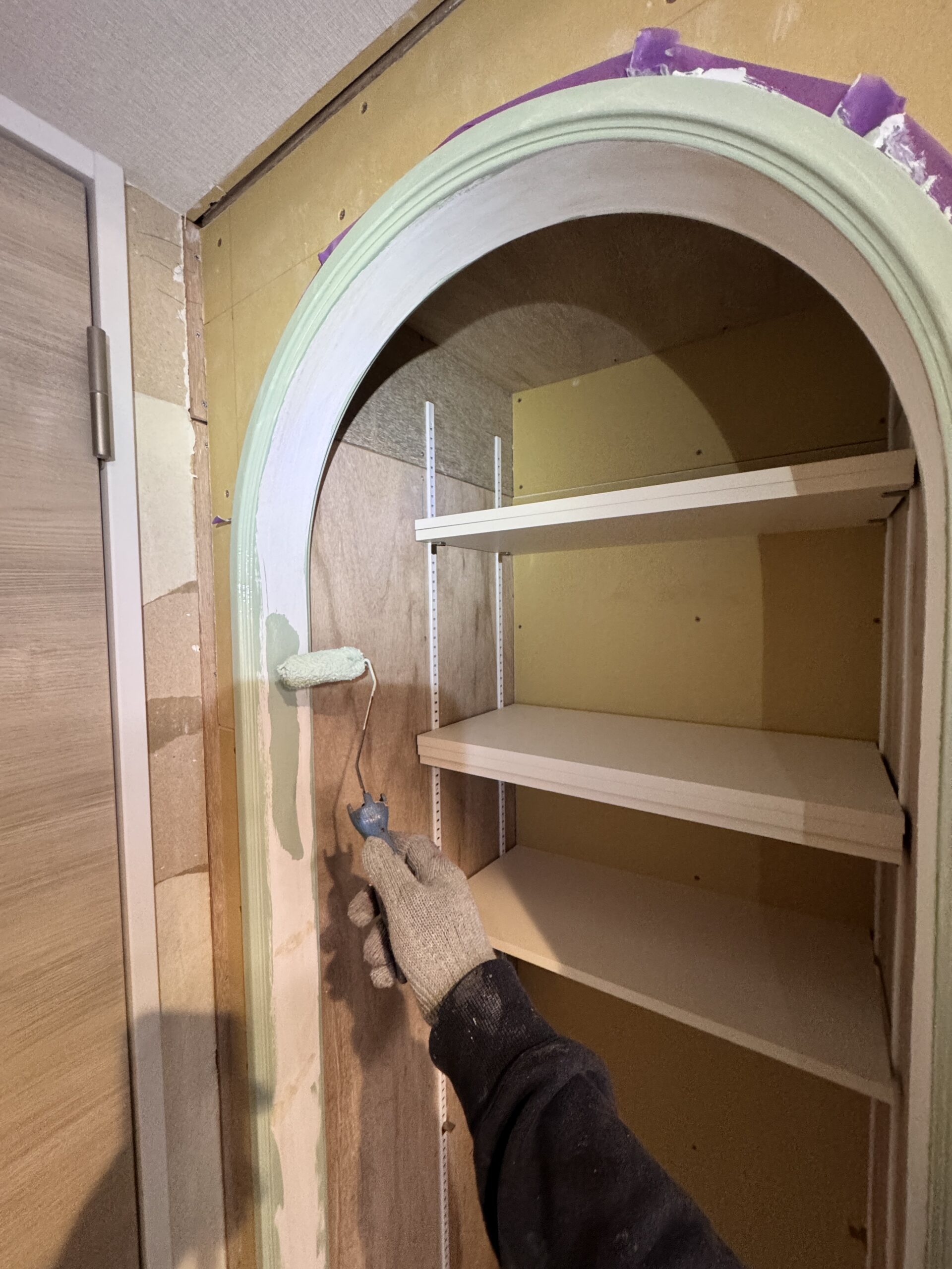 こんにちは。父も叔父も兄も塗装職人という塗装一家に生まれて塗装歴25年。塗装職人一筋・塗人本舗の代表親方・榎本健二でございます。本日は大阪市の森ノ宮のリノベマンションのお洒落なアーチ型枠の塗装をおこないました(^^♪
