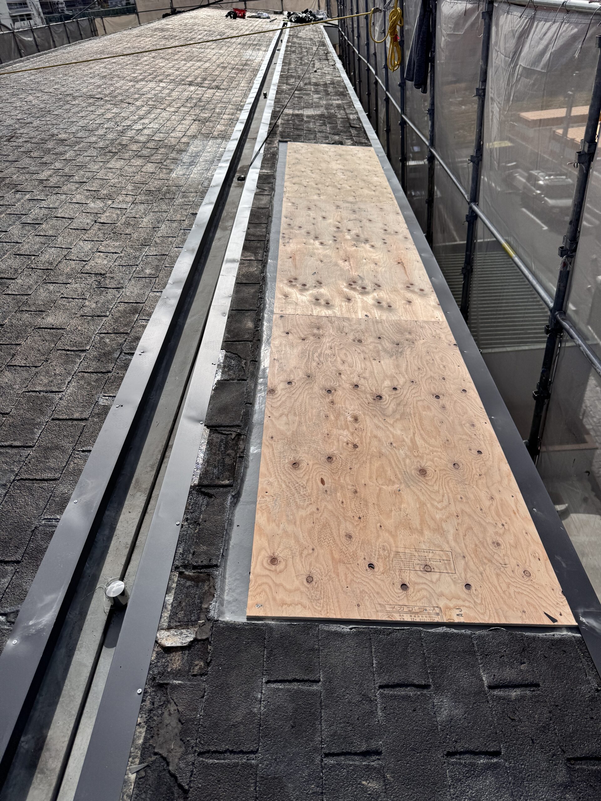 屋根材がない箇所にはコンパネを式全体の高さを合わせていきます☺(下地は重要)