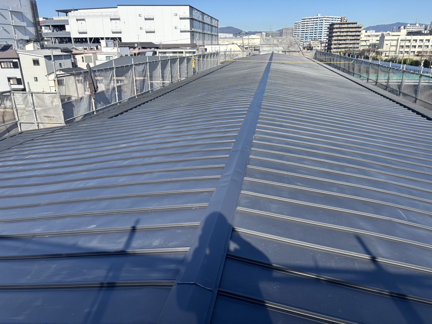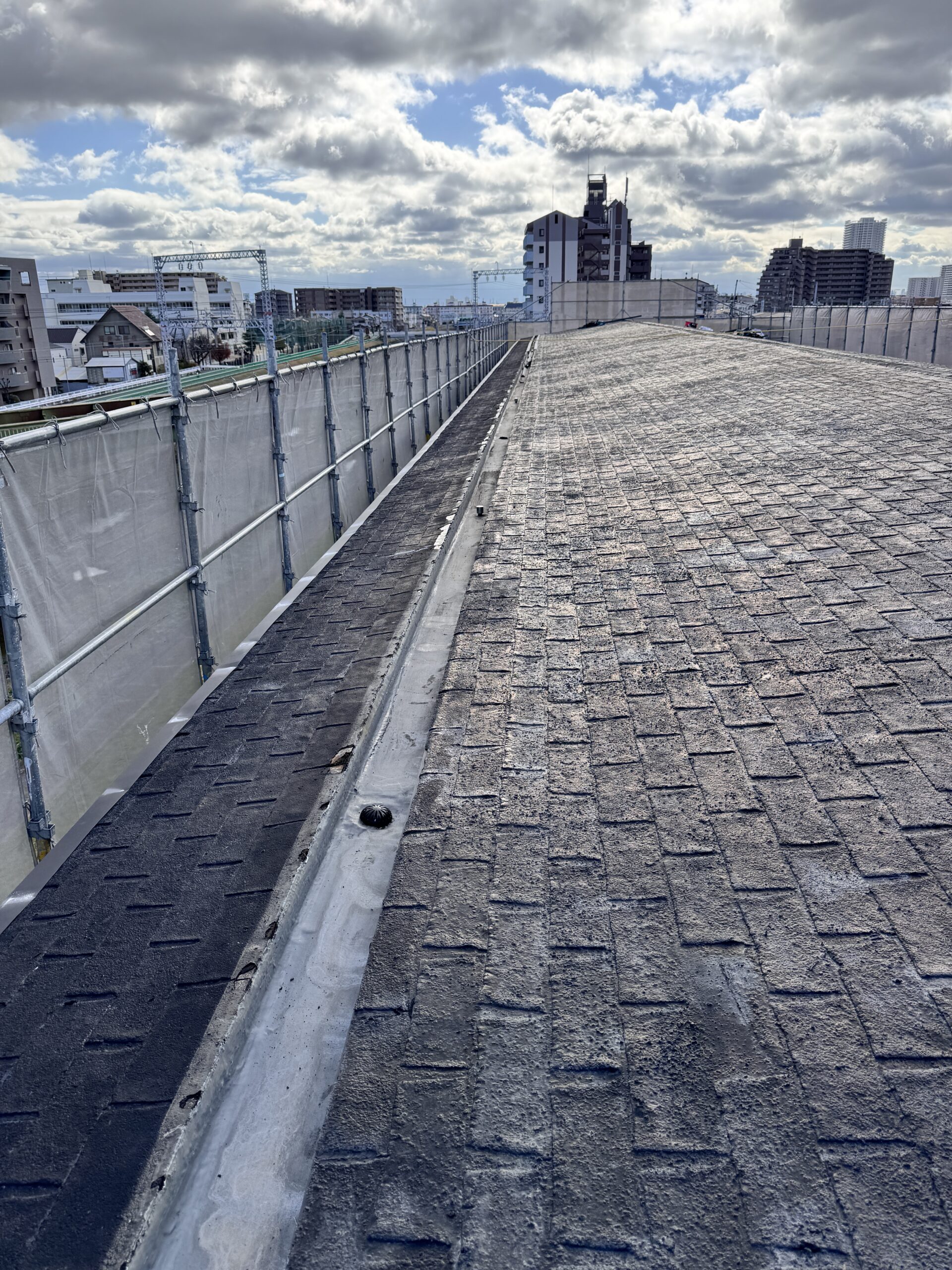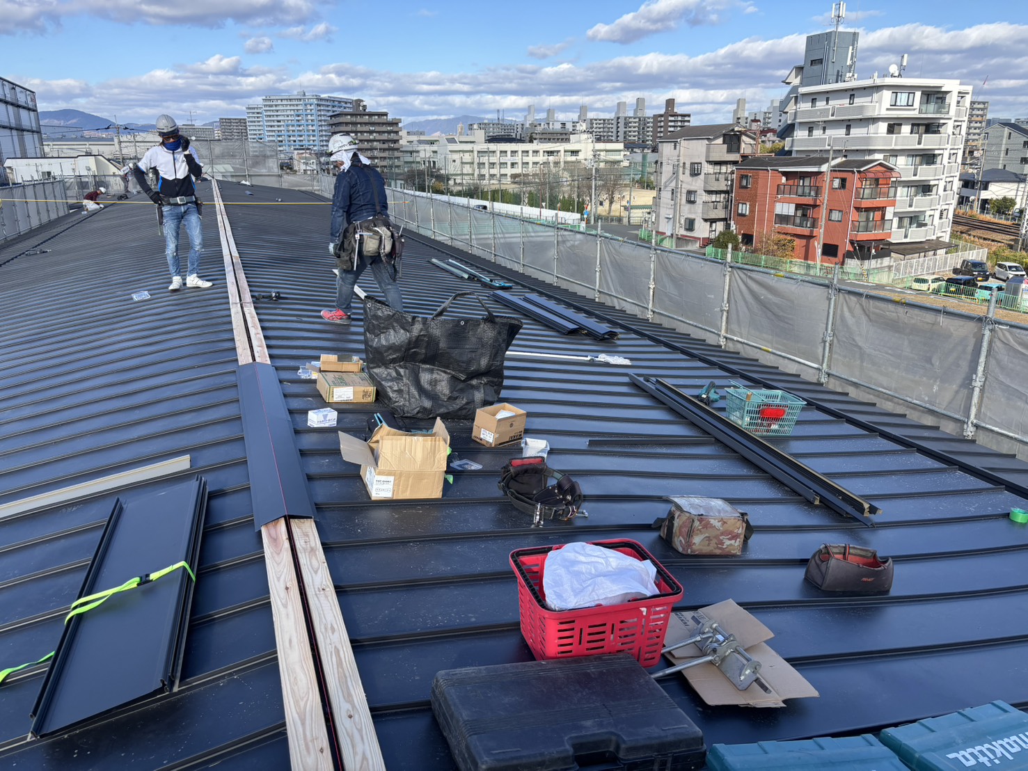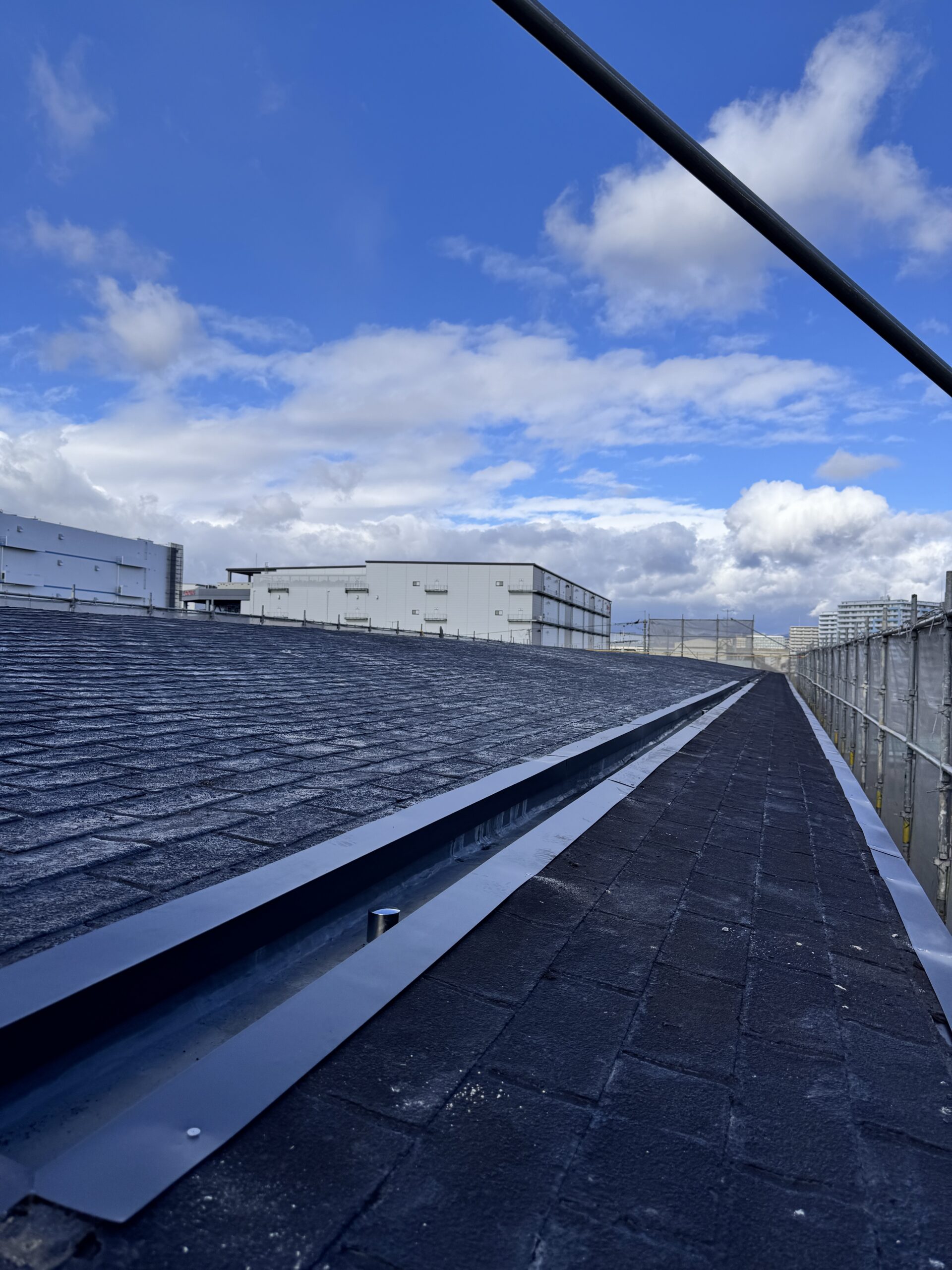 こんにちは。父も叔父も兄も塗装職人という塗装一家に生まれて塗装歴25年。塗装職人一筋・塗人本舗の代表親方・榎本健二でございます。本日の投稿は屋根のカバー工法です(‘ω’)ノ奥行き60M程の物件で500㎡程ございます!!